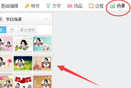 7、点击“场景”,选择合适的场景效果,如不需要可以不选择。