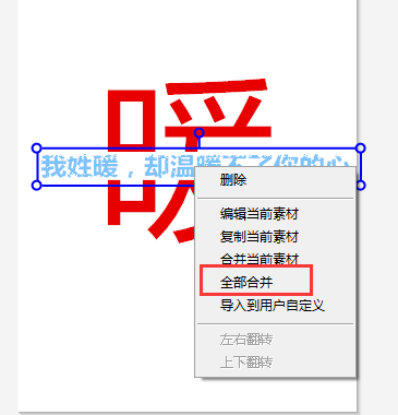 4、右击最新输入的文字选择【全部合并】,防止文字字样和改变位置。