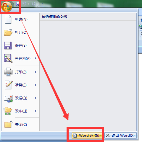 2007年中点击左上角的office按钮点击右下角“word选项”,选择“高级”