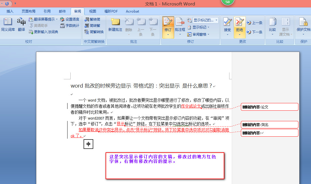 一个word文档,被批改过,批改者要突出显示哪里进行了修改,修改了哪些内容,以便提醒文档的作者或者其他阅读者。这项功能在老师批改学生的作业或论文或出版社审核作者的稿件时比较常用。