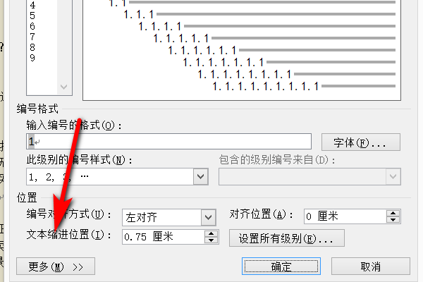 3.进入到新的多级列表里面,点击下面的更多选项。