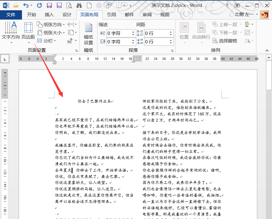 4、选中后文本就会实现相应的变化,如图所示全文分成了两栏。