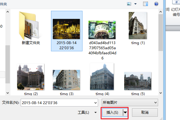 3、然后在弹出的工具栏中点击任意一张图片,再点击插入。
