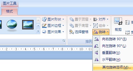 2、点图片工具下的格式菜单——旋转——其他旋转选项;