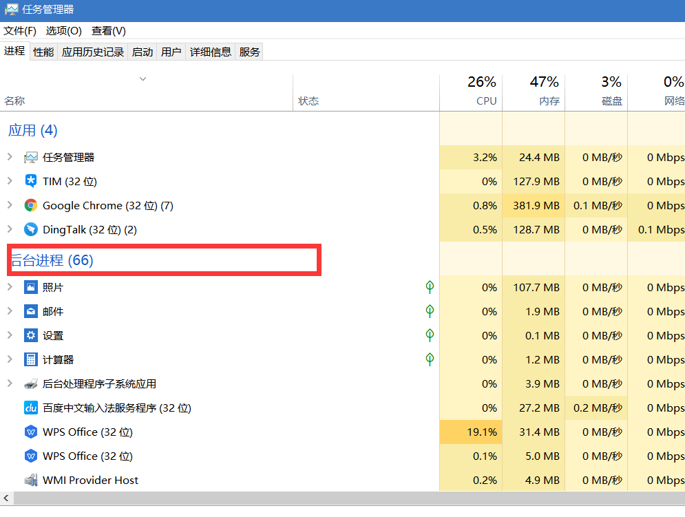 2、找到后台程序,这里面即正在运行的后台程序和进程。