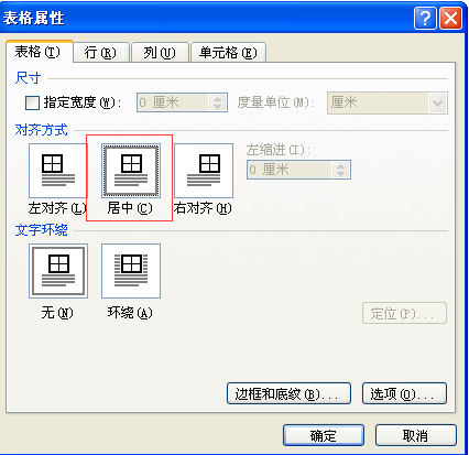 word表格 表格居中