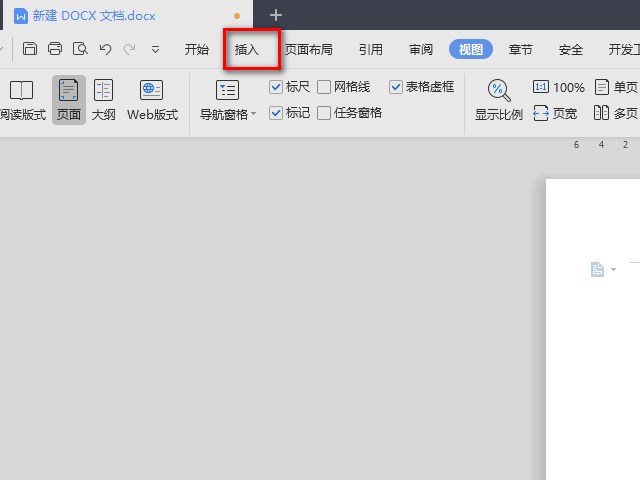 2.在文档主页面中找到插入选项,点击该选项进入至插入主页面中。