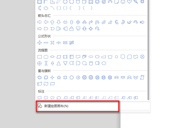 4.在形状主页面中找到绘图画布选项,点击该选项进入至绘图画布主页面中。