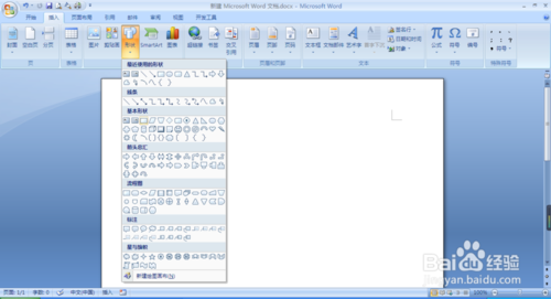 3.在插入主页面中找到形状选项,点击该选项进入至形状主页面中。