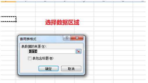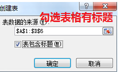 5、由于表格是带有标题的,请勿比勾选表包含标题的选项。然后点击确定。