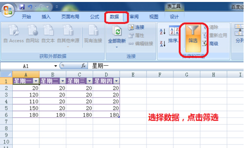 7、接下来取消掉丑陋的筛选标签。将鼠标房子筛选标签表格中,然后点击数据选项卡,点击筛选开关。即可取消筛选。