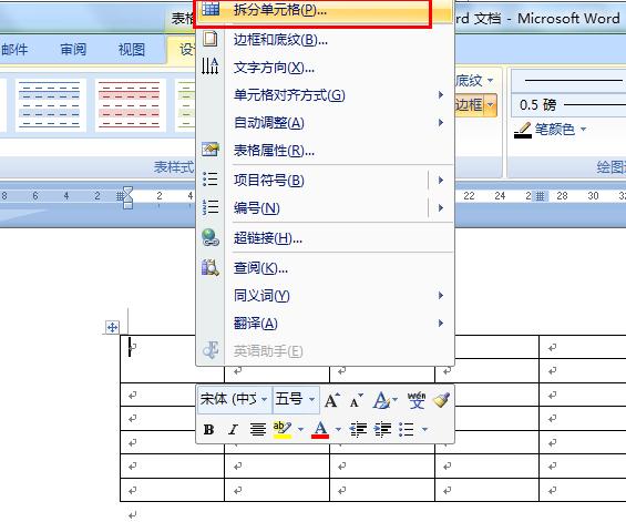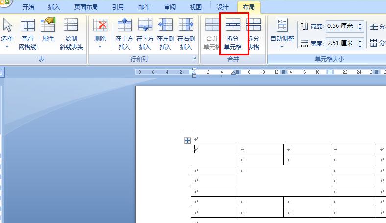 word制作的表格中,怎样把"合并单元格"后的各个格子的线条再恢复出来?