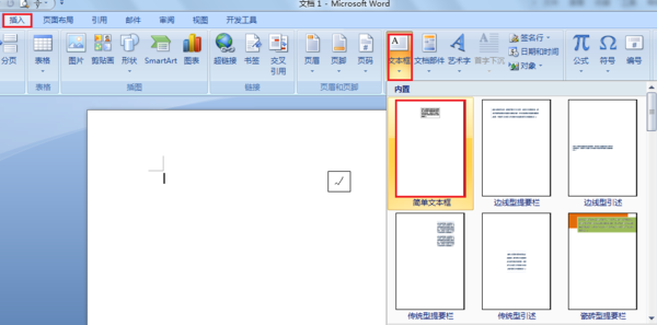 1、单击“插入”、“文本框”、“简单文本框”。
