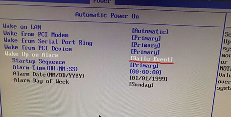 第五步:保存设置退出bios。此后,在关机状态下,当bios中的时钟跳到设定的时刻,机器就会自动启动。