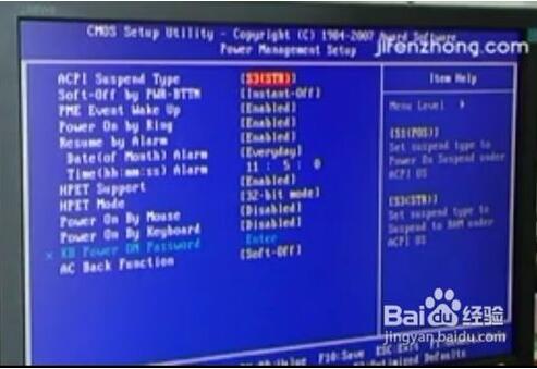 启动系统按DEL,进入BIOS,然后选中 "POWER MANAGEMENT FEATURES"