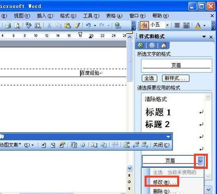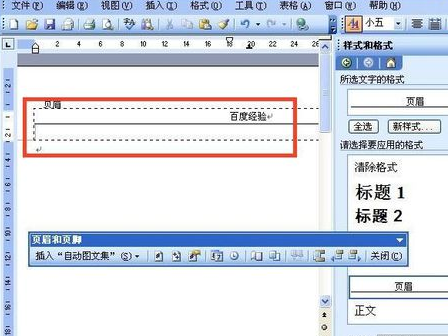 3、点击样式和格式后右侧出现样式和格式窗口,然后双击页眉处选中后会出现虚线框