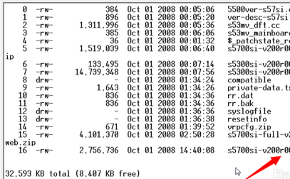 1、在<Quidway>模式下查看一下我们的web文件名称,输入dir 可以得到如下内容。