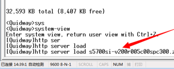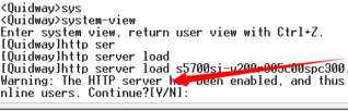 2、记下web.zip之类的文件名,来到[Quidway]模式下,输入[Quidway]http server load S5700SI-Full-V200R005C00.002.web.zip
