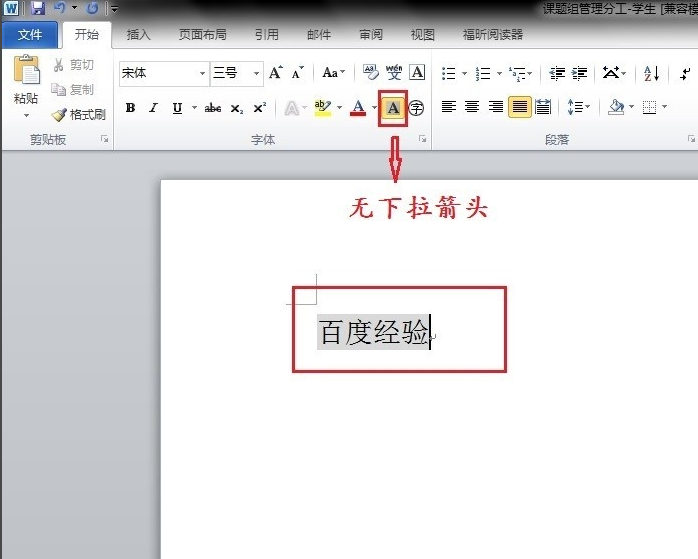 2、要修改这个灰色,先选中要修改底纹的文字,点击菜单栏中开始下的段落中的底纹旁边的下拉箭头
