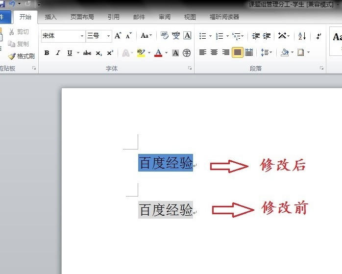 5、设置完成后点击确定关闭窗口,返回档主界面,可以看到文字已经被设置了5%的底纹颜色。