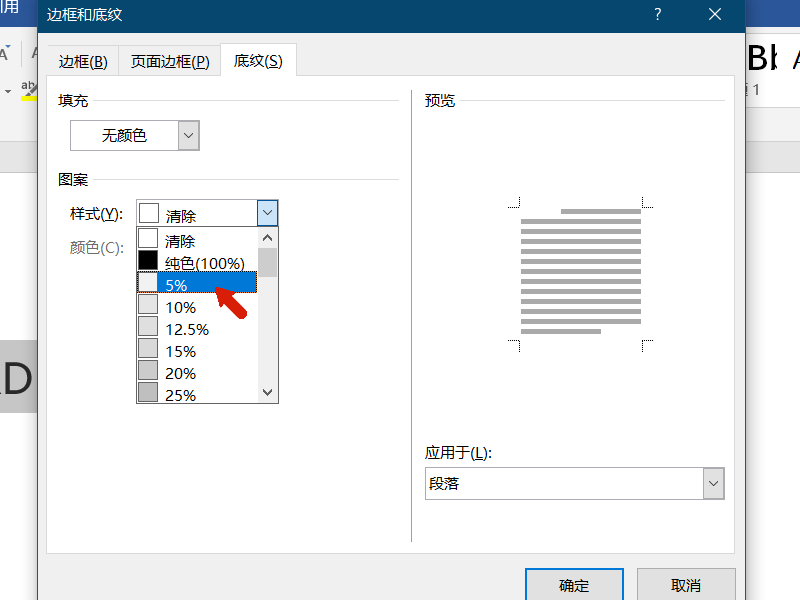 WORD底纹填充颜色为灰色-5%怎么设置?