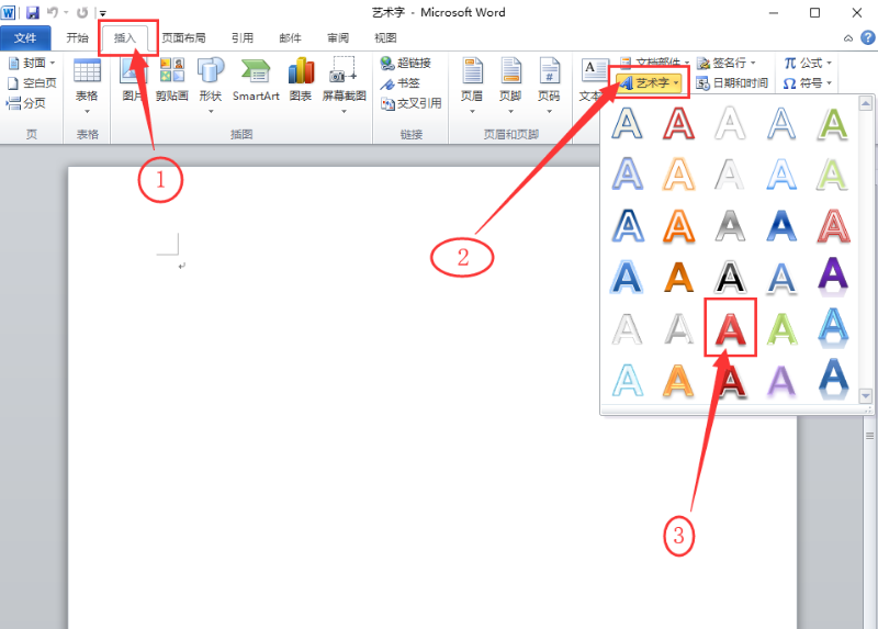 1、点击插入选项卡,点击文本工具组中的艺术字按钮,选择喜欢的艺术字效果