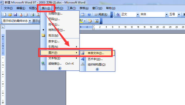 打开word文档,把光标定位在首页上,点击”插入“,选择”图片“之后,再点击”来自文件“;