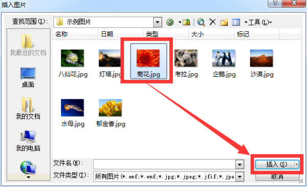 打开”插入图片“的界面窗口,从电脑上选择任意一张背景图片,点击”插入“;