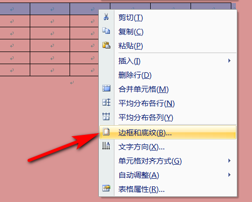 2.接着点击鼠标右键,在弹出的窗口中选项边框和底纹。