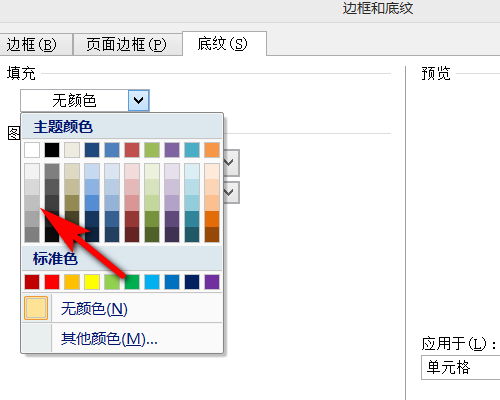 3.在底纹一栏里点击填充,然后在主题颜色里面选择白色、背景1、15%即可。