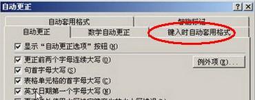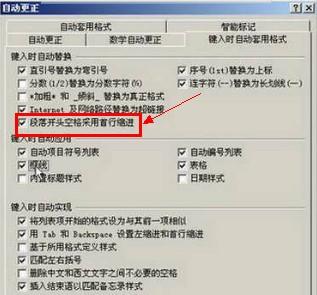 2、在随后弹出的【自动更正】对话框中点击【键入时自动套用格式】选项卡,去掉【段落开头空格采用首行缩进】前的勾选即可。
