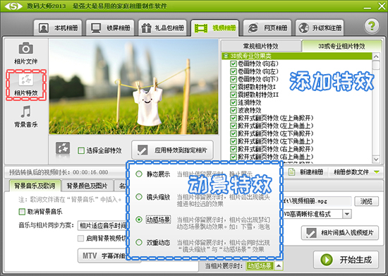 直接把自己喜欢的相片,配上音乐、文字特效制作出各种动态效果的视频和电子相册