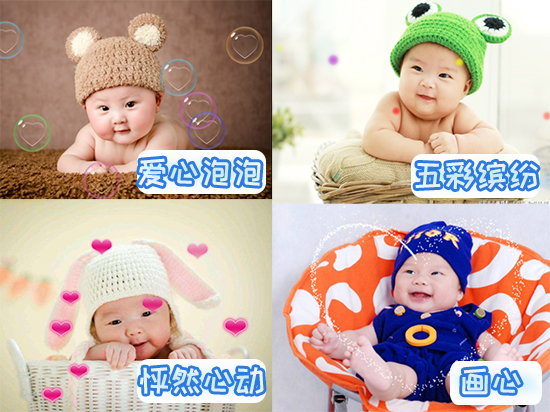 翻页、卷轴、旋转等几百种酷炫相片转场特效智能渲染,花瓣纷纷、爱心泡泡、浪漫蒲公英等梦幻动感场景智能应用,不用自己设置~制作效果很精美,也非常简单好用