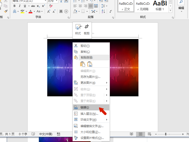 3、在插入的图片上单击鼠标右键,然后选择链接菜单。