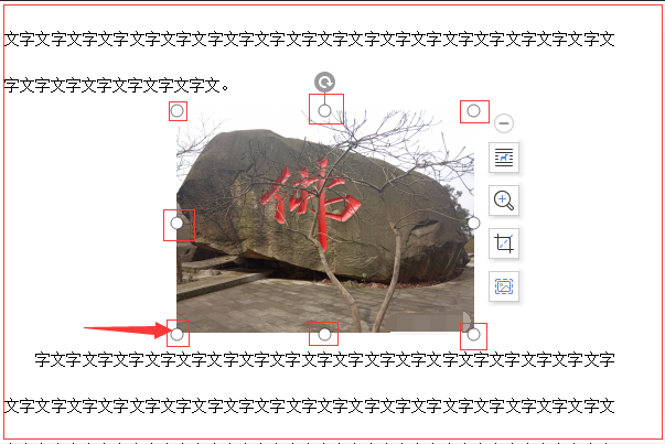 4、将光标移动到小圆圈上,光标变成双向箭头符号。点击鼠标左键并向图片外围拖动鼠标即可放大图片。
