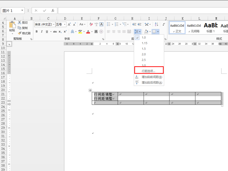 1、选中表格中需要调整的文字,点击工具栏“行和段落间距”旁边的小三角形(如图1所示),在弹出来的界面中的,在展开的界面中,打开“行距选项”;