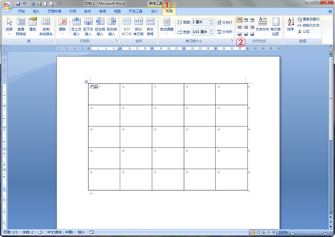 1、在 Word 中新建一个表格,Word 将会显示“表格工具”动态工具栏。