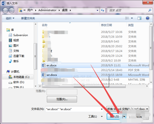 在弹出的“插入文件”对话框中依次选中你要合并的word文档,然后单击“插入”,即可完成。