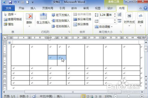 打开Word2010文档页面,选择表格中需要合并的两个或两个以上的单元格。