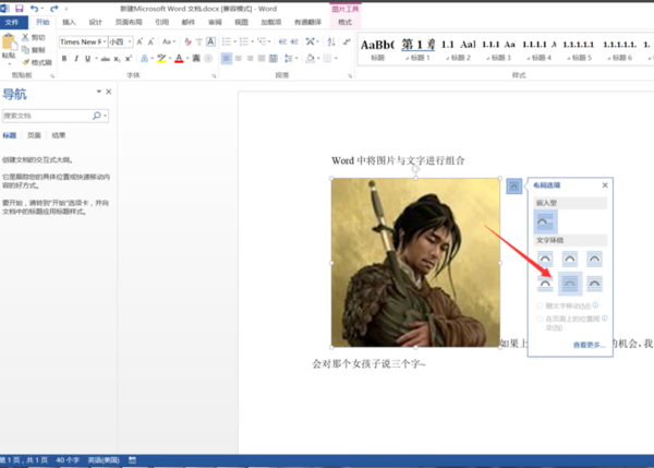 4、然后点击这张图片,在布局选项中,选择图片衬于文字下方