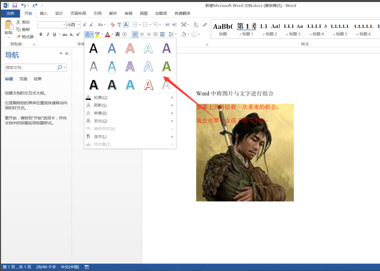 4.然后点击对象后面的下拉小三角,在出现的菜单中点击 文件中的文字 选项。