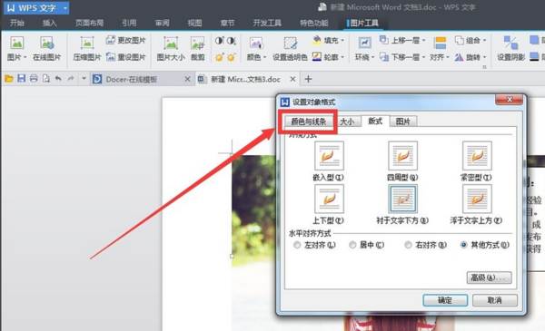 2,双击顶角之后,就会弹出来一个“设置对象格式”的设置小窗口,我们点击那个“颜色与线条”。