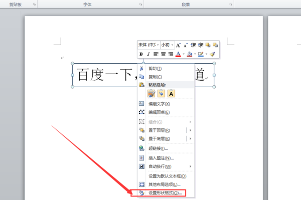2、在文本框区域内点击鼠标右键,选择“设置形状格式”。