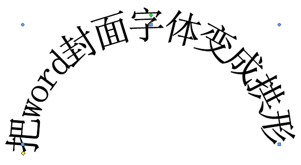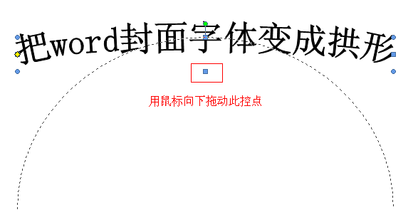 3、单击确定按钮后,页面一出现艺术字,用鼠标向下拖动如图所示的控点至所需要的形状即可;