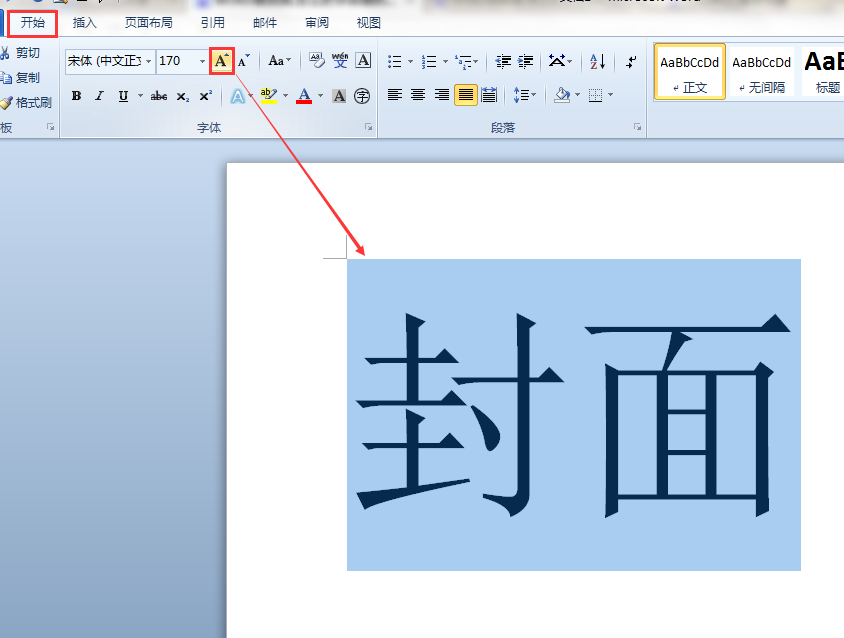 1、开始菜单下,选中文字,点击【增大字体】,一直点击直到字体大小合适为止。