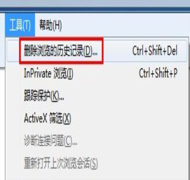 2、点“工具”->“Internet选项”->“清除历史记录”