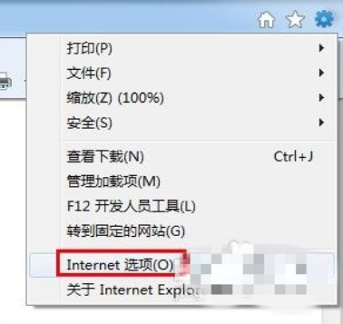 4、单击上方工具 ,从菜单中选择Internet选项。
