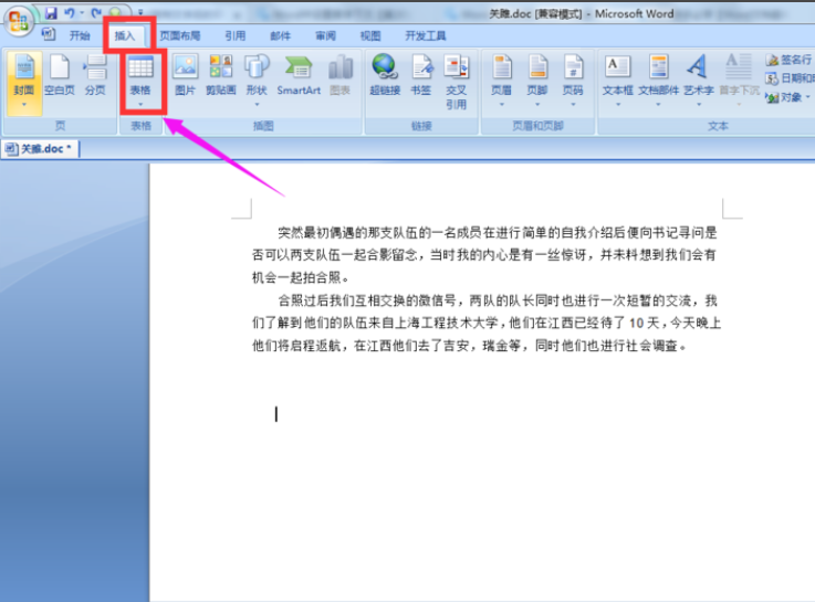 2、然后在“插入”的页面中点击“表格”选项,插入需要的表格。