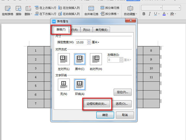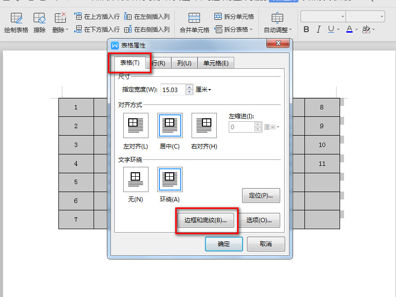 4、在弹出的“表格属性”对话框选择“边框和底纹”进入。