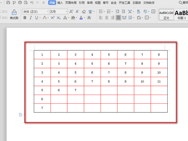 7、这样在word文档中就建立好了一个带有颜色和宽度设置的表格。